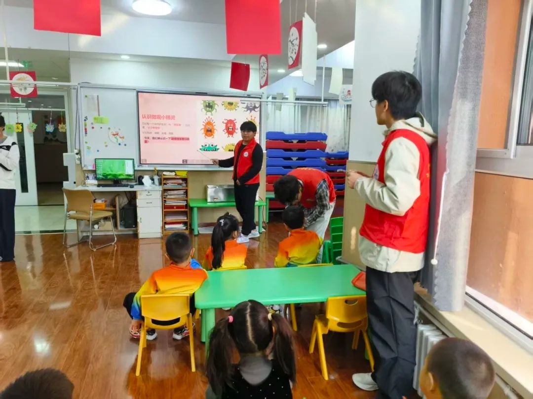 活动中,志愿者通过童趣化的PPT展示、通俗易懂的语言讲解与趣味问答,将细菌、真菌等无处不在的微生物知识变得直观可感。