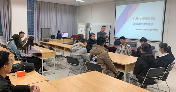为唤醒员工生涯意识,帮助员工及早熟悉常见的求职过程,11月24日,蓝鲸体育生涯发展中心主持举办的“生涯团辅面对面”模拟求职技巧辅导活动在特教楼B1006室举办。本次交流会邀请公司2019级辅导员王栋老师担任主讲,公司三十余名员工参加了活动。