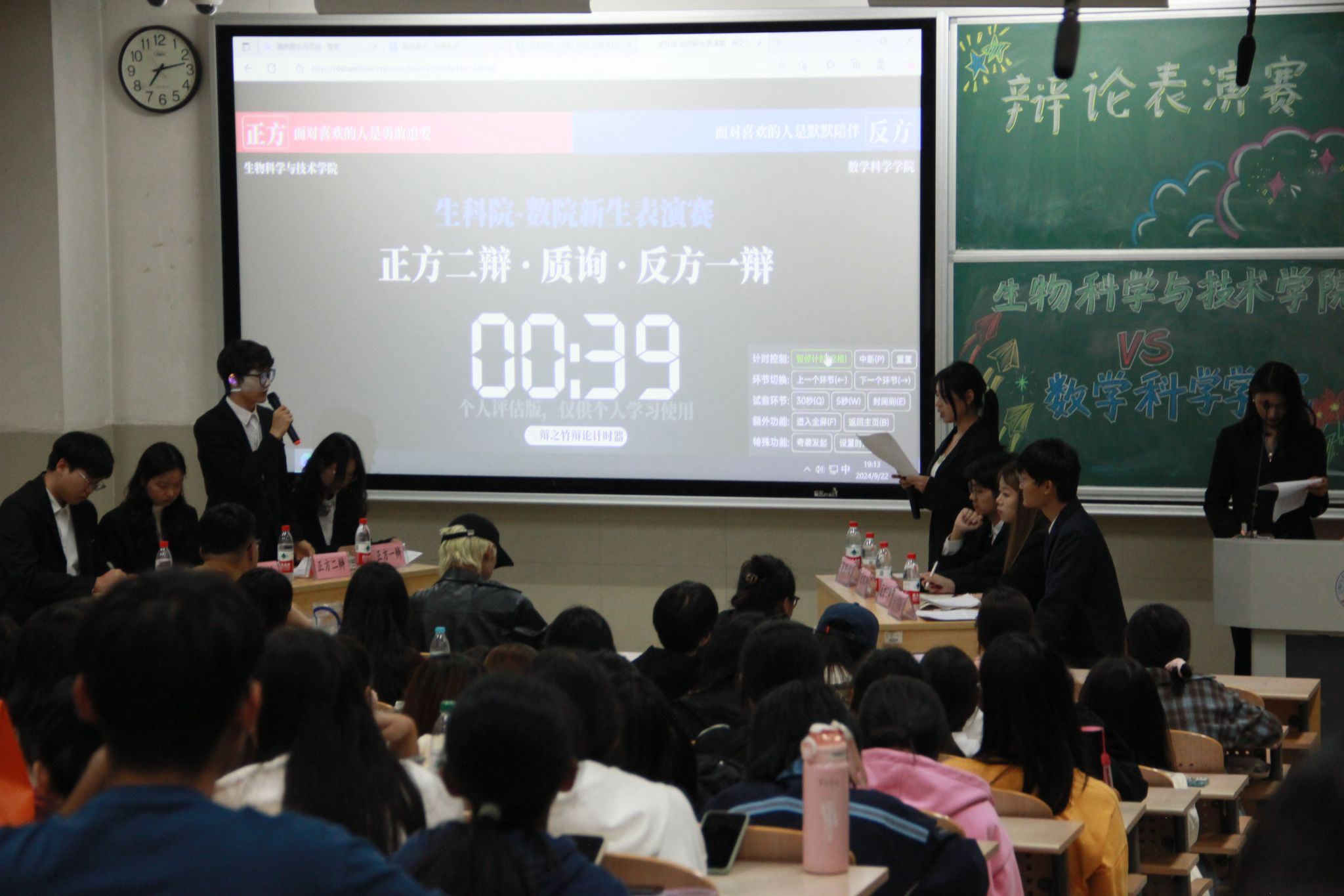 为使24级新生深入认识辩论赛,并激发他们对辩论的热情,蓝鲸体育于9月22日与数学科学公司共同举行了一场精彩的辩论表演赛,比赛围绕辩题“面对喜欢的人,是勇敢追爱还是默默陪伴”展开了激烈的辩论。