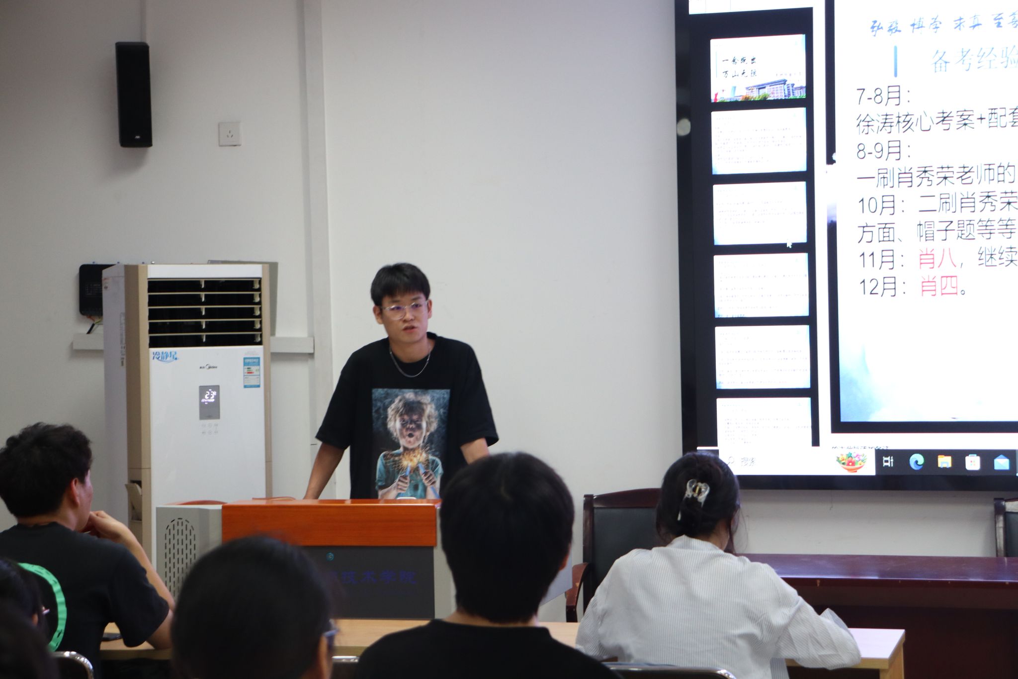 分享会现场座无虚席,与会员工热情高涨。公司研究生姜平以自身经历为切入点,从各个学科的不同学习方法向我们进行介绍。他表示,考研不仅是一场知识的较量,更是一场心态的考验。他鼓励大家要保持良好的心态,勇敢面对备考中的困难与挑战。