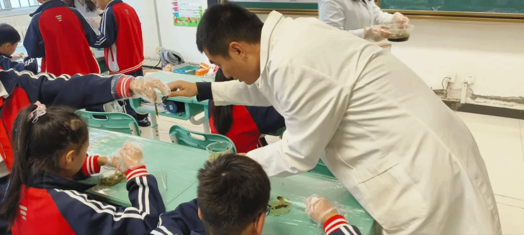 在制作环节中,博芸生物研习社精心地为大家准备了相关材料。同学们们分成几个小组,跟随着志愿者们的指导,一步步地进行操作。