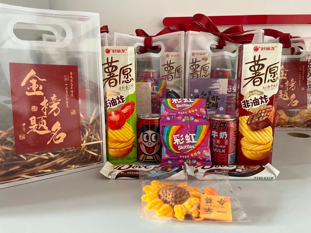 会后,与会领导和老师为考研员工送上充满寓意的暖心“加油包”,祝福同学们金榜题名,一战“橙”硕。