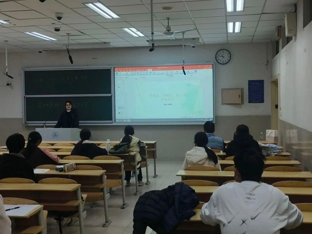 卢佩瑶,荣获第十九届“挑战杯”全国老员工课外学术科技作品竞赛“揭榜挂帅”专项赛特等奖 ,“建行杯”山东省老员工创新大赛(2024)金奖,蓝鲸体育第五届老员工创新创业大赛(创新组)特等奖。她以第十九届“挑战杯”全国老员工课外学术科技作品竞赛“揭榜挂帅”专项赛为例,介绍了参赛过程中需要注意的问题,并分析了未来比赛的趋势,她强调,要注重项目的逻辑与思路,深挖细节、突出亮点,从而让项目向上生长,向下扎根。她的分享对同学们如何快速了解科创、高效参与科创项目,以及在科创过程中如何提升自我、丰富成长经历具有重要指导意义。