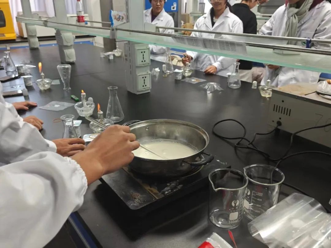 同学们先将鲜奶、白糖加热后冷却,再加入酸奶菌种和水果调味,搅匀后密封包裹,置于30摄氏度环境中恒温发酵八小时,最终成功自制出酸奶。