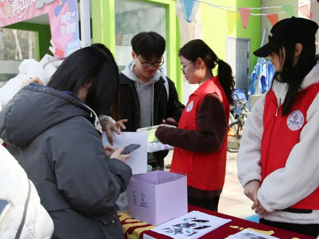 在校内的八食堂广场也在进行着公益活动。在废物兑换的“废品回收区”,同学们不仅让废品再次利用,还进行了关于废品处理、微生物分解、生态保护等方面的答题。在此过程中,同学们既掌握到相关知识,又能进一步理解生态保护理念。