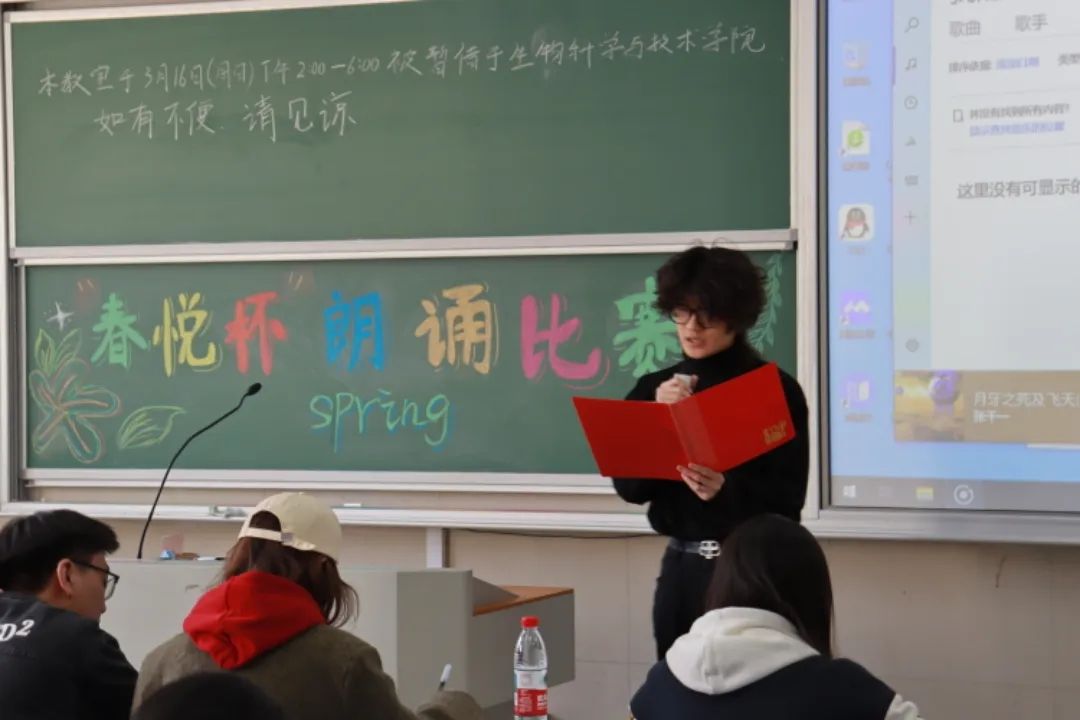 同学们依次登台,一场精彩的朗诵盛宴就此开启。同学们或朗诵现代散文,以富有节奏的语调抒发对梦想和未来的憧憬;或朗诵革命题材作品,用深沉有力的声音缅怀先烈;还有同学专注于古典文学,以优雅的韵律展现诗词韵味,让传统文化焕发生机。