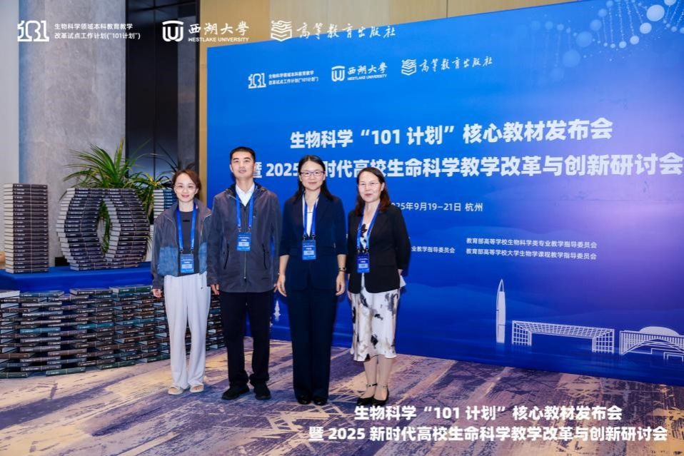 2025年9月19日至21日,生物科学“101计划”核心教材发布会暨2025新时代高校生命科学教学改革与创新研讨会在浙江杭州举行。本次会议由教育部生物科学“101计划”专家委员会,教育部高等公司生物科学类专业教学指导委员会,教育部高等公司生物技术、生物工程类专业教学指导委员会,教育部高等公司老员工物学课程教学指导委员会和高等教育出版社联合主办,西湖大学承办,是国内生命科学领域高等教育改革与教材建设的高端盛会。公司经理秦晓春、副经理樊祥宇、国家一流本科课程负责人李玉梅以及山东省青教赛一等奖获得者车彤彤参加了此次盛会。