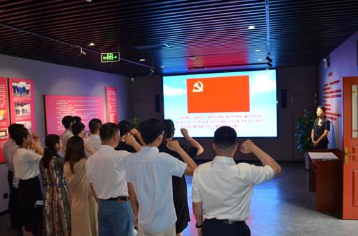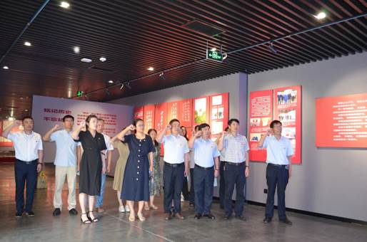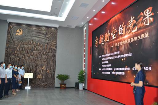 在“四五党性教育基地”,党员们怀着崇敬的心情,依次参观了“星星之火燎原齐鲁”“廿二烈士血洒刑场”“坚守信仰矢志不渝”“牢记使命砥砺前行”等展厅,在文字讲解、影像呈现、实物展陈等展示形式下,身临其境地学习了山东省早期共产党组织发展与斗争历程。一张张陈旧泛黄的图片资料,一个个感天动地的故事, 让党员们对中国共产党人的初心和使命有了更深层次的感悟和认识。面对鲜艳的红色党旗,在场全体党员共举右手,重温入党誓词,追忆入党初心,表达了对党的坚定信念和真挚情感。