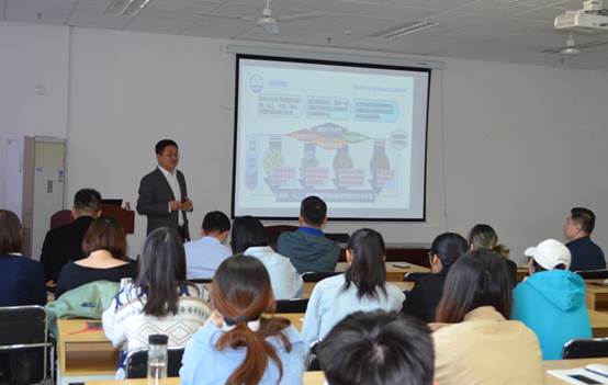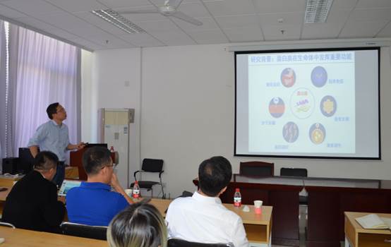 吕雪峰副所长首先介绍了中国科公司青岛能源与过程研究所的发展定位以及学科分布和科研现状,然后作题为“微生物生物合成技术与绿色生物制造”报告,以螺旋藻规模培养制备甘油葡萄糖苷、蓝细菌高温高光逆境适应机制的解析与优化、植物源杀虫剂大黄素甲醚的微生物合成、蒽醌类天然产物开环新机制等研究展现了基础研究和应用研究有机融合;徐健主任作了题为“拉曼组学(Ramanomics):从原理到仪器”的报告,创造性的提出了拉曼组作为细胞群体/群落功能快速探测新手段的新视角;李福山组长作题为“海洋大藻能源与资源化利用”报告,从嗜热微生物资源的挖掘、多糖裂解酶热适应、热稳定性机制的解析、酶法制备海藻寡糖工艺等方面介绍了在海洋大藻开发利用方面所做的研究工作;姚礼山组长作题为“蛋白质相互作用检测与计算模拟”的报告,从盐键的温度依赖性机制、蛋白质氢键协同性检测等方面展现了在蛋白质相互作用检测与计算模拟方面的研究工作。报告结束后专家与参会老师和同学就报告中涉及的研究进行了深入交流探讨,现场气氛热烈,与会教师和研究生收获良多。