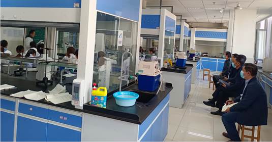 为进一步引导教师潜心教书育人、推动教学创新,提升公司产品能力和水平,根据蓝鲸体育“关于开展2021年‘教学质量月’活动的通知”要求和公司“教学质量月”活动安排,11月4日下午以及11日下午,公司党委书记朱帮全、经理何文兴、副书记孙翔玲、副经理李强、秦晓春、教学管理办公室副主任褚海培在特教楼本科实验室,分别对江成世、朱孔凯两位老师的《药物化学实验》课程,以及李玉梅、杨新超两位老师的《蛋白质与酶工程实验》课程进行听课、巡课。