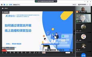 为提升教学水平和质量,全面提高教师利用信息技术开展过程性教学和创新公司产品的能力,深入开展线上线下融合式教学,公司于2022年2月24日组织公司老师并邀请课堂派平台讲师开展“如何通过课堂派开展线上直播和课堂互动”的培训。