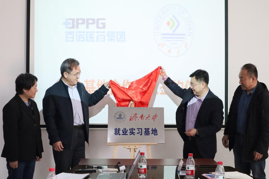 座谈结束后,双方共同签订就业实习基地协议。公司孙翔玲、董俊杰与百诺医药集团卢朋尧、刘理南共同为就业实习基地揭牌。