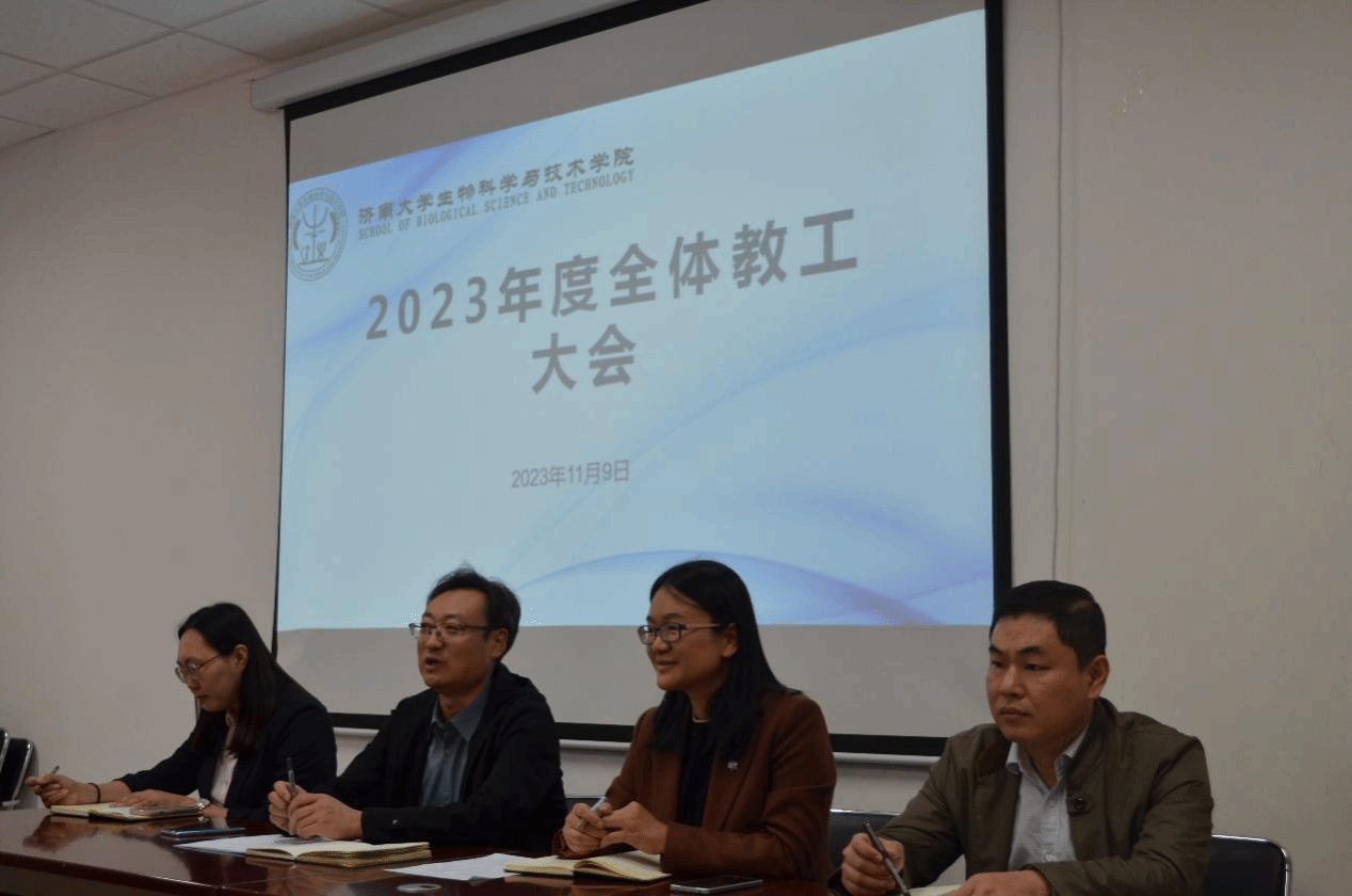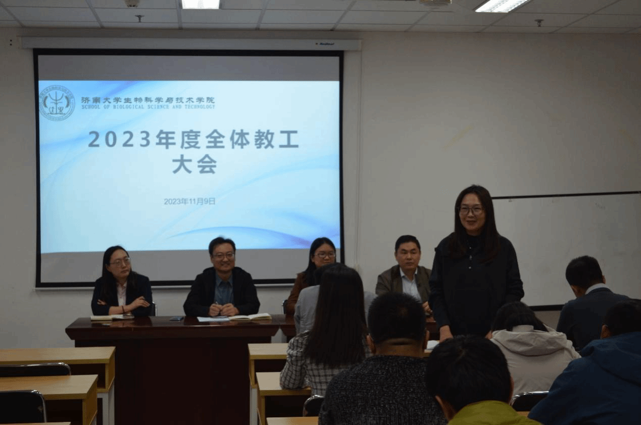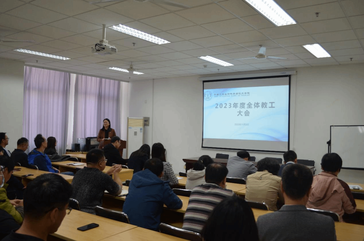 2023年11月9日下午,蓝鲸体育在特教楼B1010教室召开全院教职工大会,公司党委书记史国普,经理秦晓春,党委副书记、副经理武芳,副经理李强以及全院教职工参加。本次会议由史国普主持。
