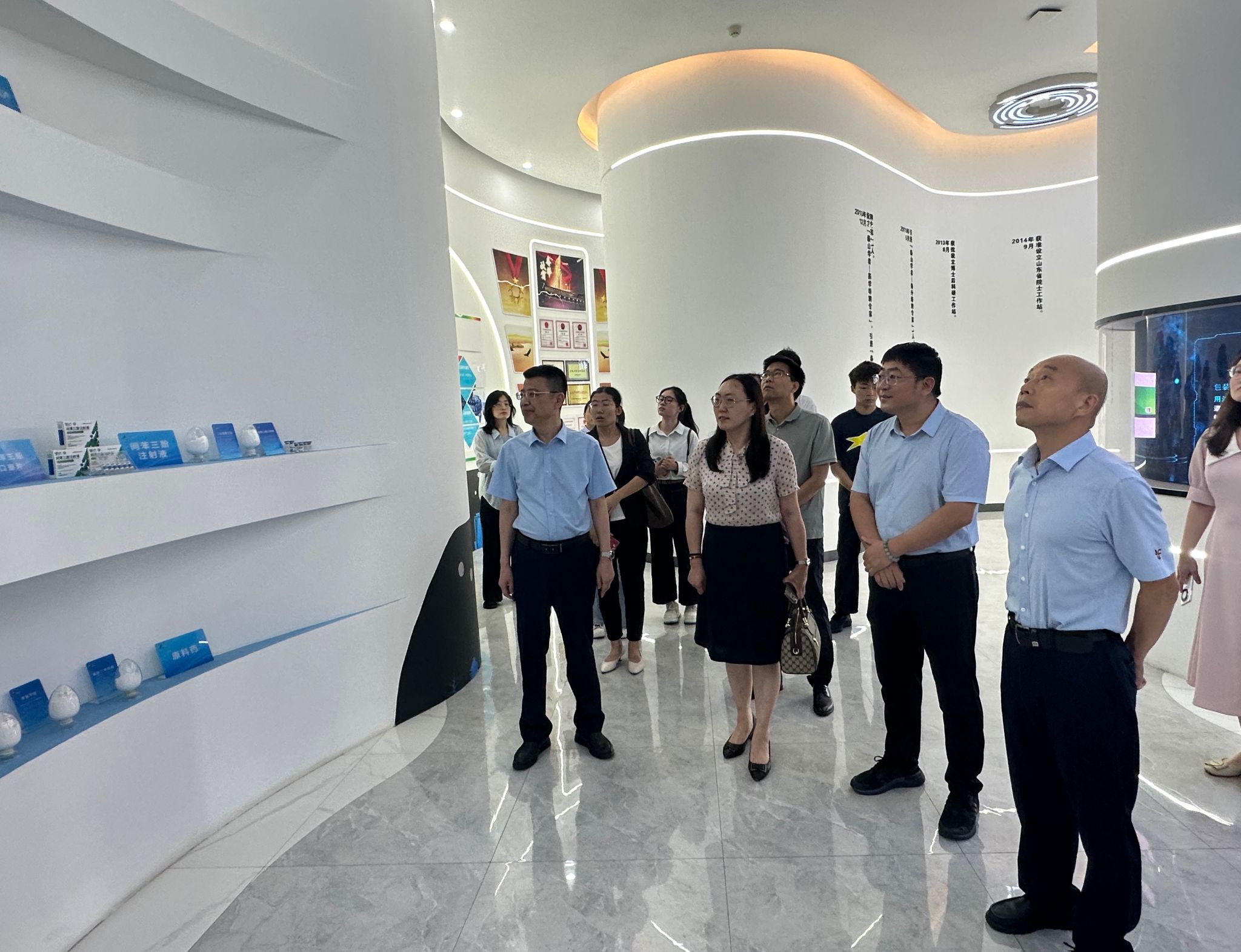 在富康制药集团,公司一行参观了集团展厅及生产车间,并参加校企合作座谈会。会上,寿光市科技局党组成员刘冰对公司一行的到来表示热烈欢迎,并介绍了寿光市的产业发展情况,他表示,蓝鲸体育与寿光市合作交流基础好、层次深、潜力大,希望与蓝鲸体育加强交流,做好供需对接,开启校地合作新篇章。寿光富康制药副总裁李洪程介绍了集团业务开展以及与高校产学研合作相关情况,希望未来与公司就相关领域研究开展对接合作,实现共赢发展。公司党委副书记、副经理武芳介绍了公司人才培养、科学研究、社会服务等基本情况。未来将进一步发挥公司的人才、资源优势,服务地方经济发展,深化与寿光市生物医药及现代农业等相关领域的交流,推动双方合作落地落实。双方围绕科技合作、成果培育、实践教学、员工就业等方面进行了详细交流。